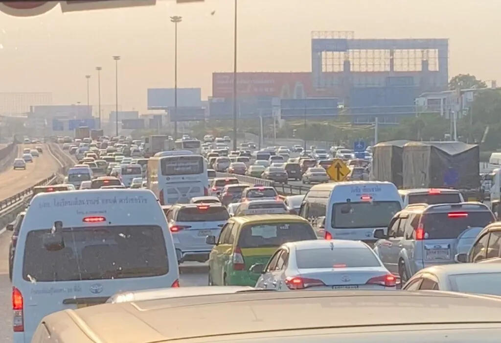カオサン通り行きの公共交通機関を探して空港内をさまよった後、180バーツでリモバスに乗った。が、乗ってから調べたらS1というバスなら60バーツであることが発覚。少し残念な気持ちになったが乗れたので良し。ちなみにMRTでもカオサン通りの近くまで行けるらしい。MRTはすごく安いのと、切符が面白いらしいので今度乗ってみようと思う。リモバスは高速道路に乗るので1時間くらいでカオサン通りまで着くらしい。たしかに、道路の混雑が下道に比べて少ないように見える。気のせいだったっぽい。車だらけ。リモバスの出発は5分遅れほどだったけど、ほぼ満席になるまでは発車せずに待ってるらしい雰囲気があった。