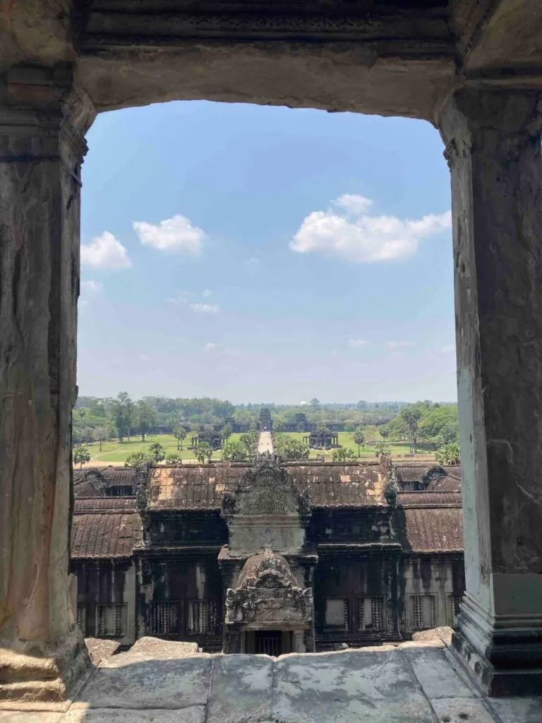アンコールワットの中から入口の方をみた景色。