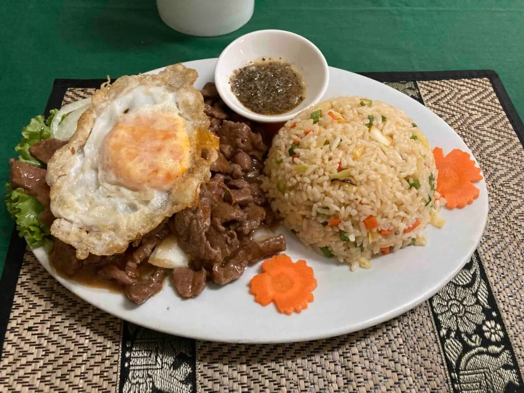 ホテルに着いたがチェックイン時間がまだだったため、ひとまず荷物を受付に預けて(といっても、どこかにしまうわけではなく、荷物がまとめて置いてあるところに一緒に置かれるだけ)、周辺を散策。オールドマーケットをひと通り見てみた。タイでもそうだったが、店員はもれなくスマホを触っていて、無関心。こちらが物を見始めると、いま初めて気づいたかのように押し売りが始まる。ホテルへ戻る途中でスーパーに寄り、水を購入。物価は日本とあまり変わらない気がする。ホテルへのトゥクトゥクの運転手が18ドルでアンコールワットに連れて行ってくれると言ってきたので、スモールコースで15ドルまで値引き。だいたい相場くらいなはず。11時からアンコールワットに向けて出発。最初にチケット売り場に寄って、37ドルの1日入場券を購入。高い。せめて20ドルくらいにしてほしい。次にアンコールワットを見学。でかい。広い。暑い。トゥクトゥクの運転手がアンコールワットに向かう途中で1.5Lの水を買ってくれた理由がわかった。アンコールワットの敷地内に屋台のようなところがあったが、明らかにぼったくりなので何も買わず。かなりしんどかったのでトゥクトゥクに戻り、次の場所に連れてってもらう。の前に、ご飯を食べられるところに連れて行ってくれた、というよりは連れて行かれた。ちょうどお腹が空いていたので許容。入り口でまだ年長くらいの子どもたちが缶バッジを売ってきた。が、買わなかった。着席後、メニューをひと通り見てみたが、案の定外国人価格だった。肉と目玉焼きと米がのったプレートを頼んでみたが、意外と量が多くて、おいしくて満足。日本だったらたしかに7ドルするなあと思った。