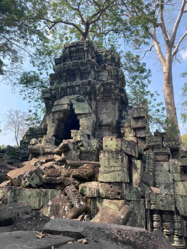 その後は大きな木があるところと、石の寺に行った。観光するためには、暑い中、段差を上り下りしながら歩き続けなければならないので、かなりしんどい。トゥクトゥクの運転手に何度もAre you OK?と聞かれた。シェムリアップでの遺跡観光は、自分でバイクを運転する以外、トゥクトゥクに連れ回してもらうの一択みたいなものだが、アンコールワット関連で働いてる人全員で協力して何とか金を落とさせようとする気持ちが透けて見えて、複雑な気持ちになった。石の寺を見終わった後はホテルへ。どこもそうだったが、セキュリティの人が何人も遺跡の中にいて厳重そうな雰囲気がある割には、ほぼ全員が座っていて、しかも動画を見ている人が半分くらいいた。ホテルへは午後4時少し過ぎについた。トゥクトゥクの代金を支払う時に小さいお金がないと言われ(トゥクトゥクの運転手たちの常套手段で、これで約束よりも多く払う羽目になる観光客がたくさんいる)、少し焦ったが、リエル(カンボジアではアメリカドルと、リエルの2つの通貨を使っている)をたくさん持っていたので、アメリカドル10ドルに加えて、5ドル分のリエルを渡して解決。運転手は明らかに残念そうにしていた。これまでカンボジアで支払いをしてわかったのは、10ドル以下はリエルで払うということだ。すごく面倒だし、仮におつりをちょろまかされてもすぐには気がつけない点がすごく不安だ。調べたところによると、偽札が出回っていたり、そもそも10ドル紙幣や20ドル紙幣のような高額紙幣は受け取ってもらえないこともあるらしい。