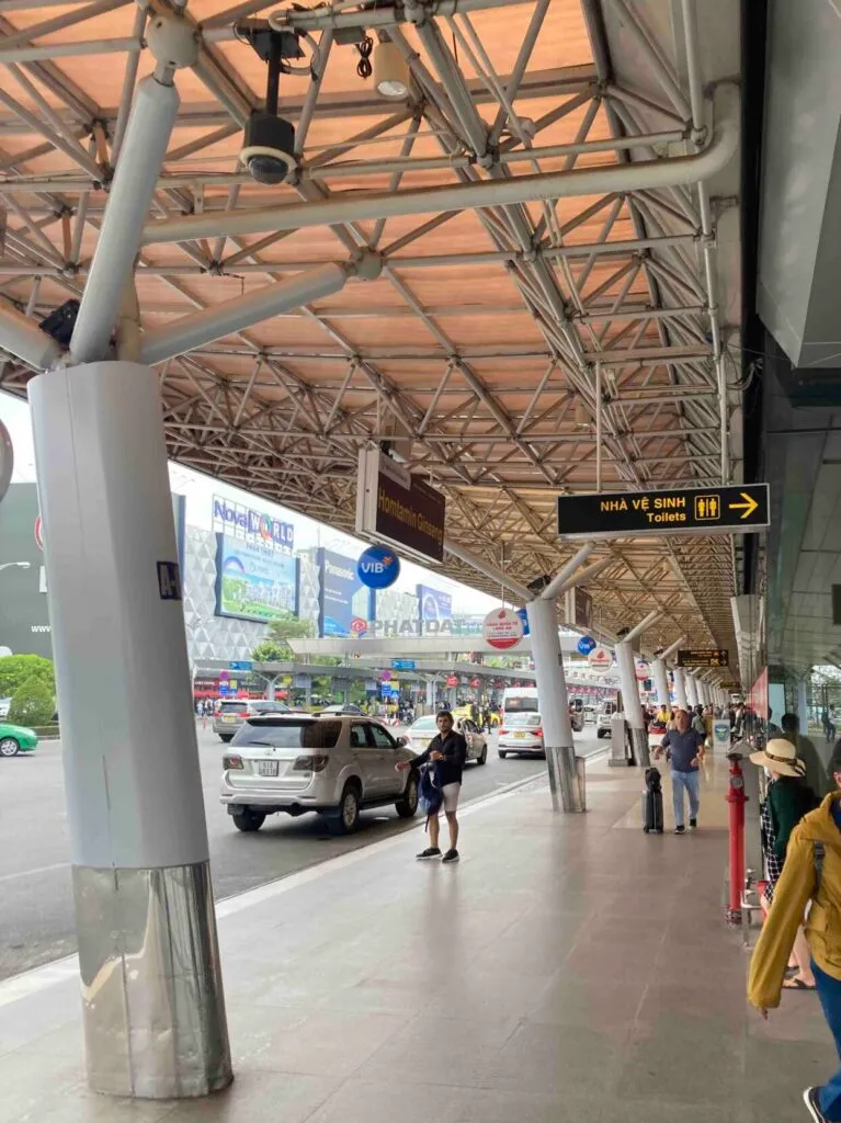 ベトナム国際線ターミナルから国内線ターミナルへの移動中。すぐ近くなのに場所がわかりにくく、タクシーに一瞬だけ乗って降ろされる人が一定数いるらしい。